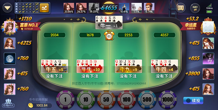 高度随机性:由于扑克牌的组合具有高度随机性,每一局游戏的结果都无法预测,这使得百人牛牛充满了未知和惊喜。